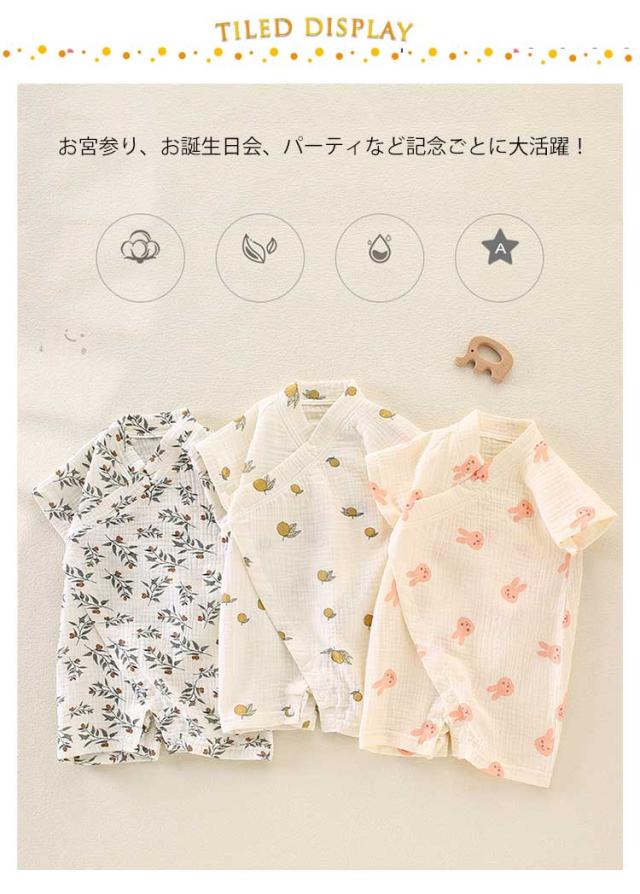 | おしゃれでかわいいベビー甚平ロンパース。 肌に優しいガーゼ素材!夏のイベントにも普段着にも使える♪ お宮参り、お誕生日会、パーティなど記念ごとに大活躍! 出産祝いのギフトとしても人気です。 普段着やパジャマとしてもお使いいただけます。 | |