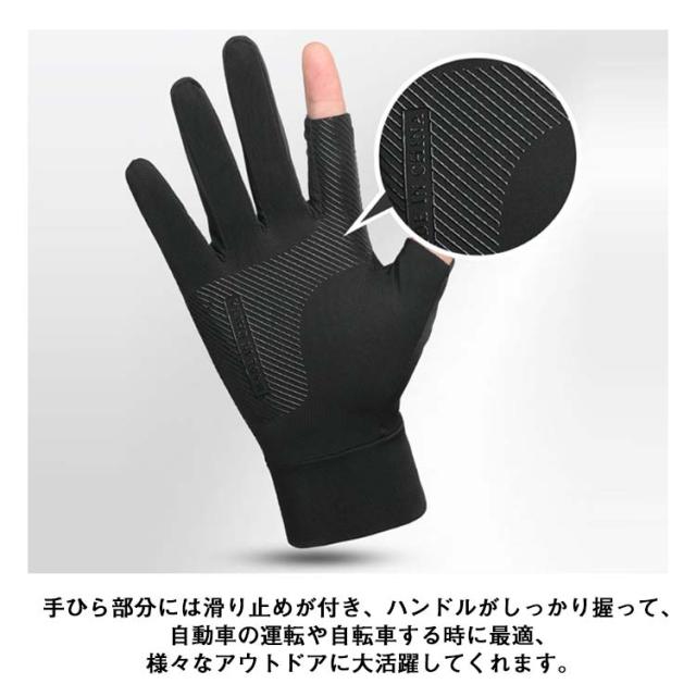 | 男女兼用冷感グローブです。 ひんやりタッチの素材なので、春夏にピッタリのメンズグローブです。 吸湿性、放湿性も優れているので、蒸れなくサラサラとしたつけ心地で夏でも快適ご使用いただけます。 高弾性、柔らかい、ひんわり、着心地が快適です! 伸縮性、通気性に優れ、様々なシーンで紫外線からしっかりカット 手ひら部分には滑り止めが付き、ハンドルがしっかり握って、自動車の運転や自転車する時に最適、様々なアウトドアに大活躍してくれます。 2本の指が伸ばせるデザイン、グローブを着用したままスマートフォンやタブレットPC等の操作も可能です。 | |