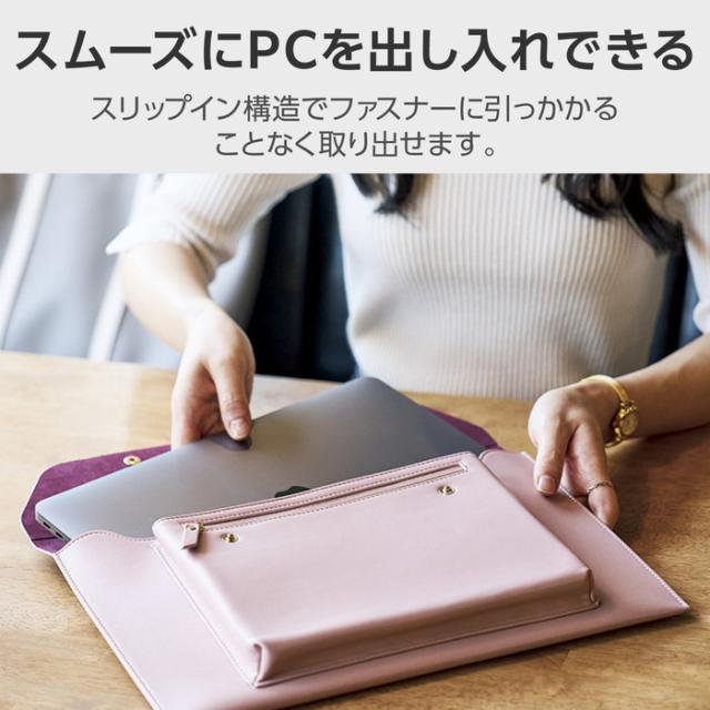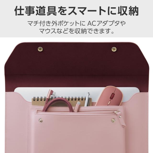 代引不可 パソコンケース 14インチ レザー スリム PCケース フロントポケット付 14inchまでの MacBook Pro Air ノートパソコン 等収納対応 ILMF ピンク エレコム BM-IBEM01PN-IL