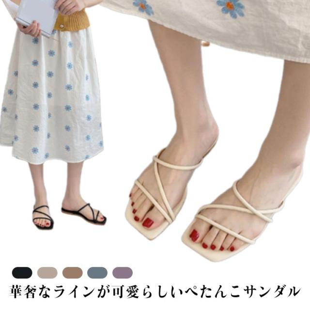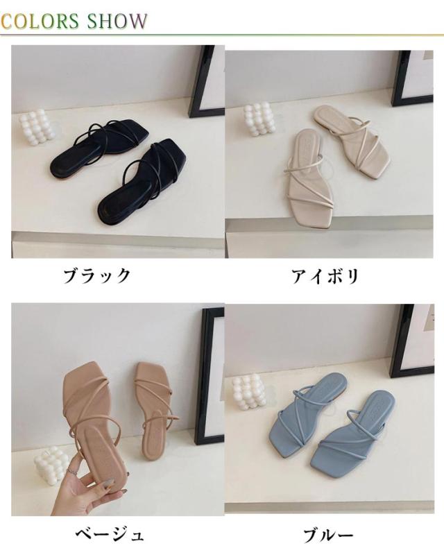人気 レディース 夏 ぺたんこ スクエアトゥ フラットソール ストラップ サマー 歩きやすい お洒落 シンプル 疲れない ビーチサンダル 美脚 ベージュ パープル キャメル ビーチサンダル