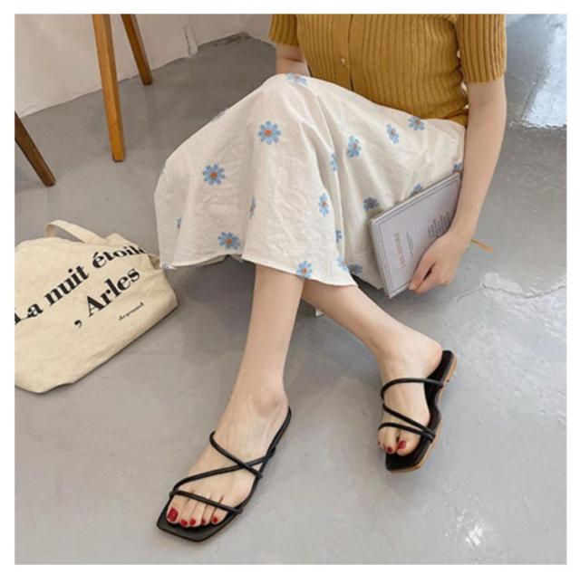| 華奢なラインが可愛らしいぺたんこサンダル 主張し過ぎずさりげなく足元を華やかにしてくれるので、キレイ目なスタイルにも合わせて頂ける 柔らかいフラットソールなのでリラックスして履けるのも魅力 | |