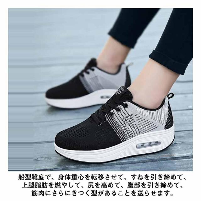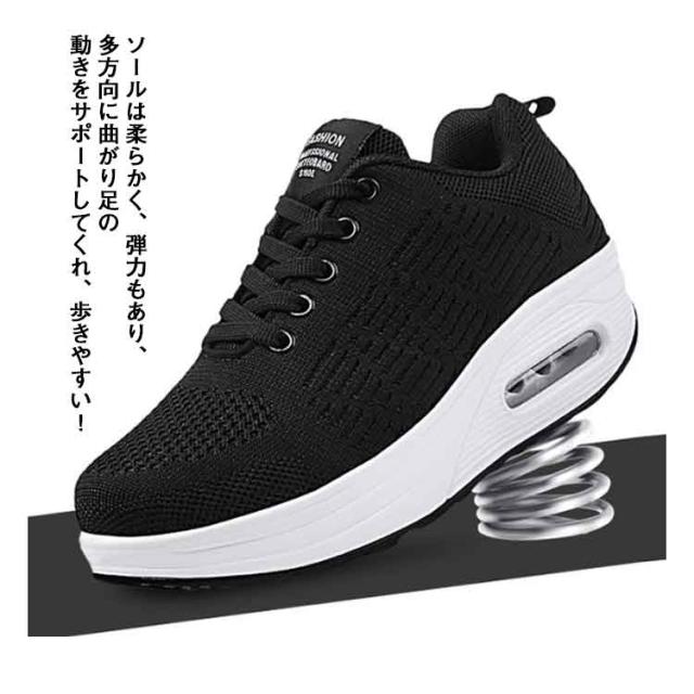 | アッパーは通気性抜群のニットを採用して、通気性も改善させるので、熱がこもるのを防ぎ、さわやかな履き心地を提供してくれます。 船型靴底で、身体重心を転移させて、すねを引き締めて、上腿脂肪を燃やして、尻を高めて、腹部を引き締めて、筋肉にさらにきつく型があることを送らせます。 ソールは柔らかく、弾力もあり、多方向に曲がり足の動きをサポートしてくれ、歩きやすい!走りやすい!ヒールにはエアクッションも付き、反発性が高く、長時間歩いても疲れにくい! ソールが滑り止め機能を強化し、雨の日にも楽に運動できます。防滑や防震機能付きの優れたクッション性があり、耐磨耗性は抜群! | |