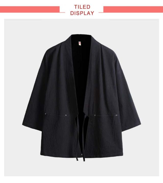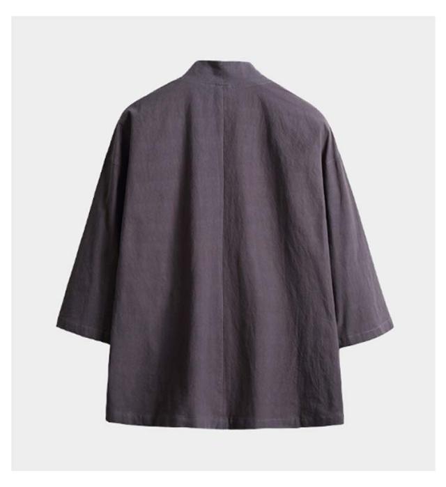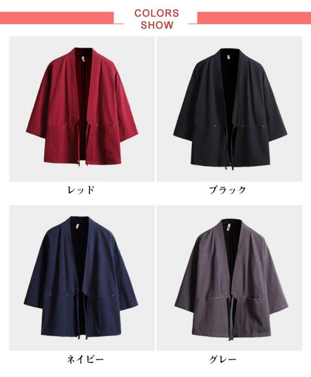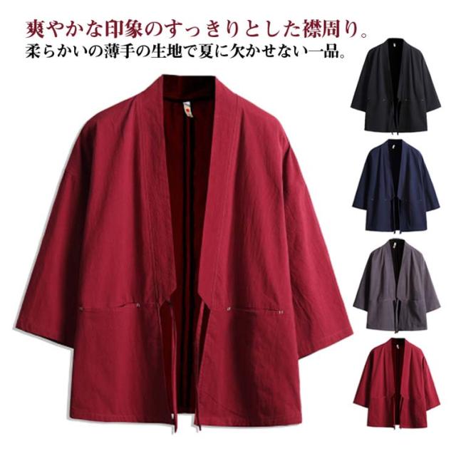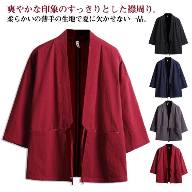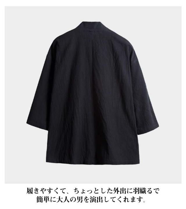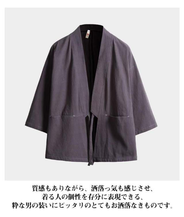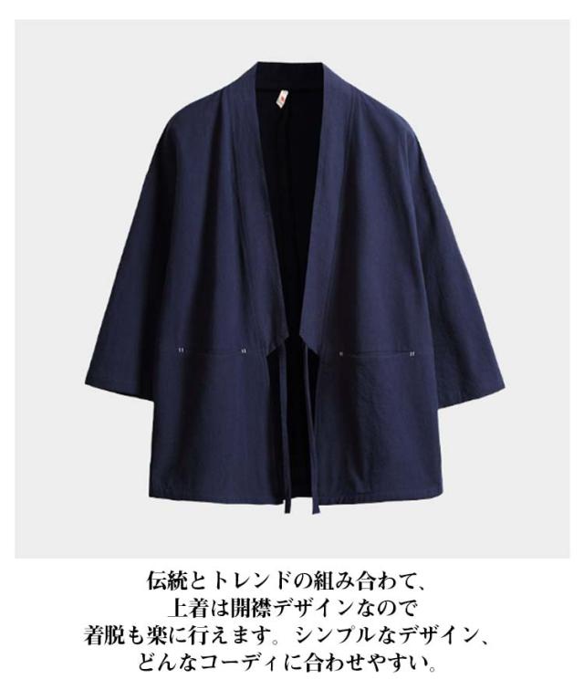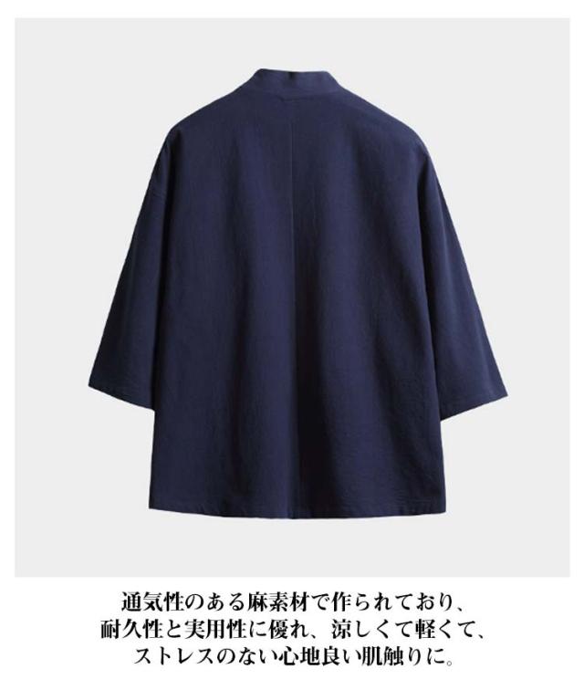 カジュアル 綿麻 無地 浴衣風 夏物 花火大会 着物 開襟シャツ 和風 アウター ノーカラージャケット トップス トップス 七分袖 男性 上着 カーディガン メンズ 部屋着 羽織 浴衣風 お祭り 送料無料 サマーカーディガン