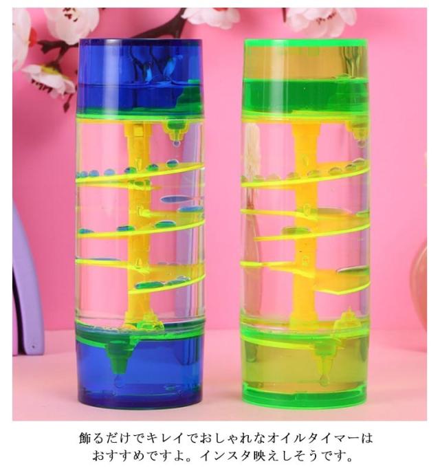| オイルがぽたぽた落ちる癒しのインテリア、オイルタイマーです。 砂時計と違い、上から落ちる液体が螺旋をぐるぐる回って下まで落ちます。 飾るだけでキレイでおしゃれなオイルタイマーはおすすめですよ。インスタ映えしそうです。 完璧な小道具のおもちゃ、オフィスの机のおもちゃ、さらには教室の報酬として。 | |