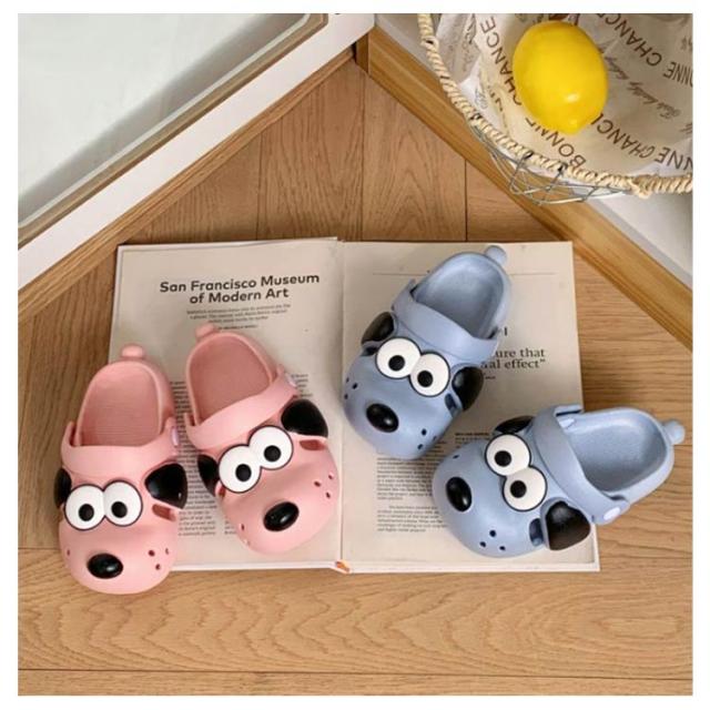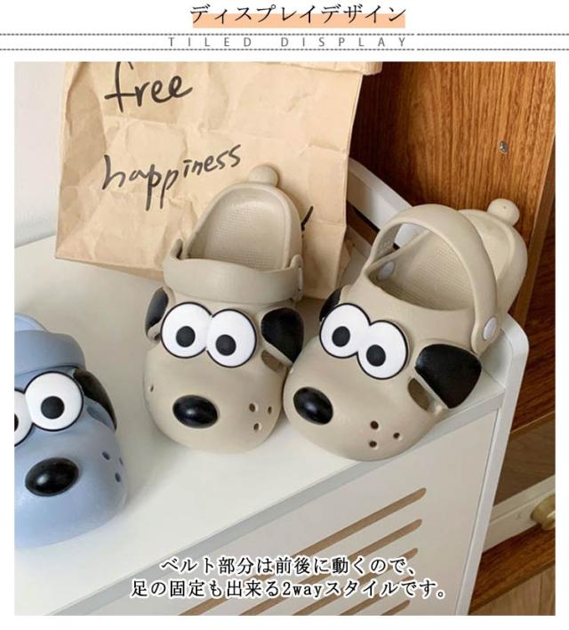 | ユニークなデザインが目を引きます!かわいいワンちゃんのスリッパサンダル。 ベルト部分は前後に動くので、足の固定も出来る2wayスタイルです。 アッパーは伸縮性のある素材で足にやさしくフィットし、すぐに脱げてしまう心配なし。 ふかふか柔らかな立体インソールで足が疲れにくい!しなやかなソール設計で足への負担を軽減します。 シューズの先部分の広い空間は足の指の動きをスムーズにできるようにし、成長発育と認知発達によい! | |