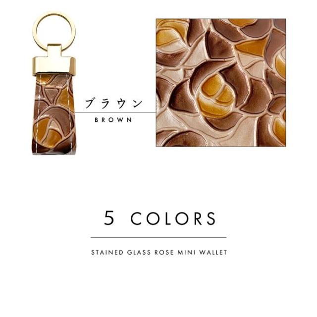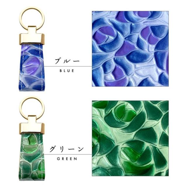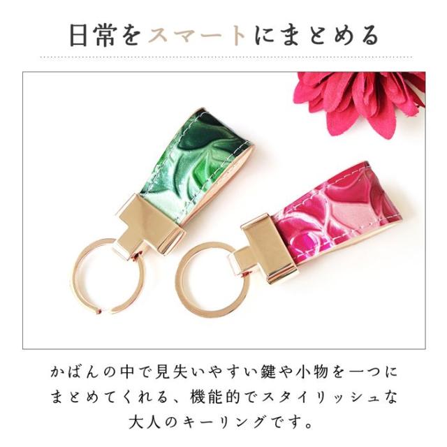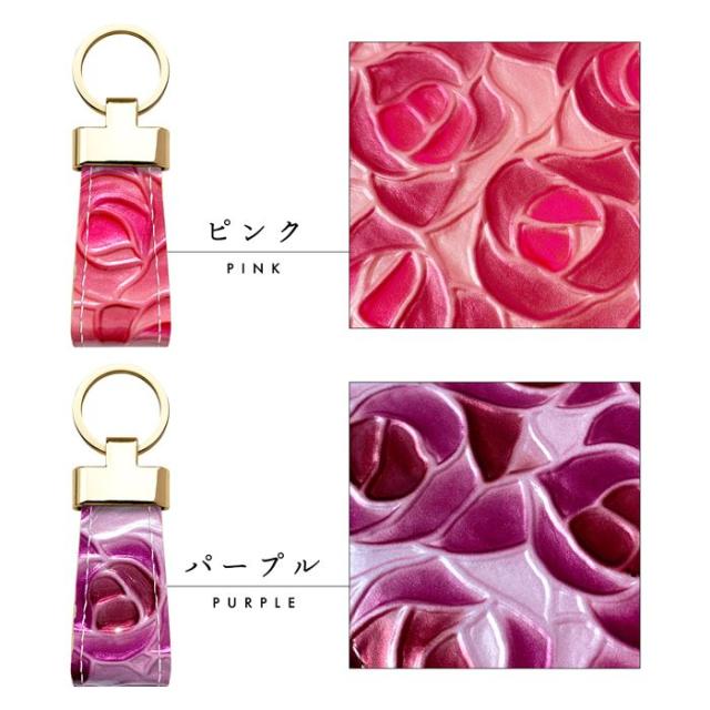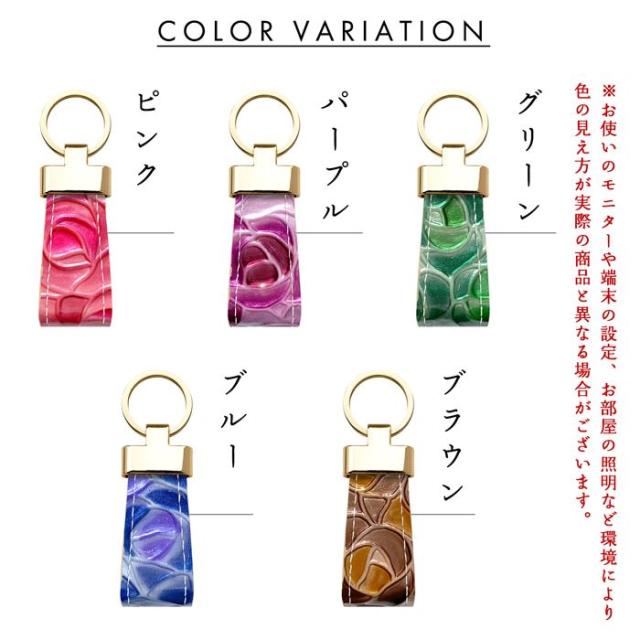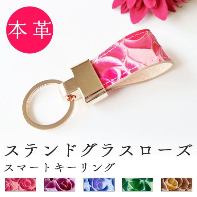 キーリング スマート レディース 本革 ステンドグラス ローズ 薔薇 バラ 花柄 本革キーリング バッグチャーム 牛革 レザー キーホルダー 鍵 カギ ステッチ