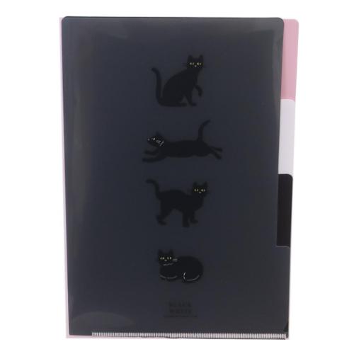 「真夜中の雑貨店 ポケットファイル A5ポケットクリアファイル 3インデックス クロネコ かわいい グッズ メール便可」