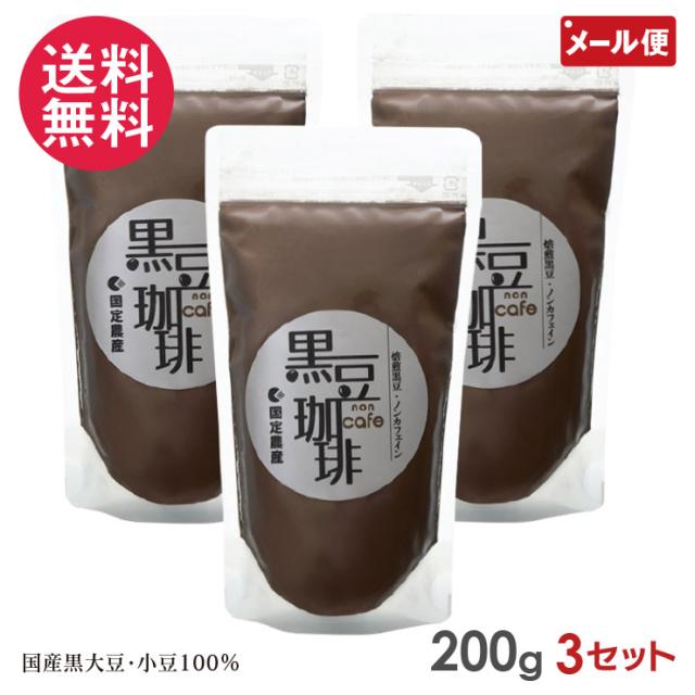 黒豆珈琲 200g×3セット 国定農産 岡山県産 黒豆コーヒー 黒大豆 小豆 100% 使用 メール便 送料無料