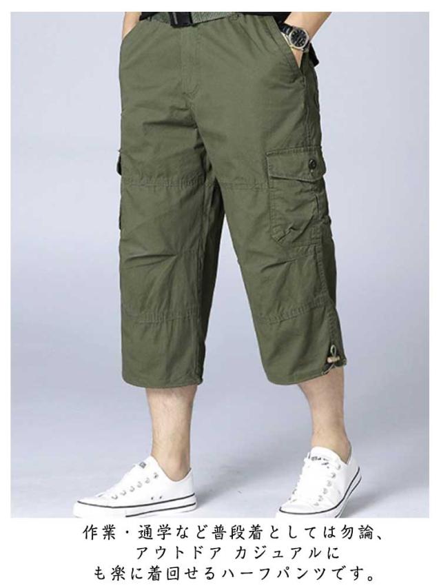 カーゴパンツ メンズ イージーパンツ 7分丈 ゆったり ハーフパンツ 夏 綿 クロップドパンツ カーゴ コットン ハーフパンツ 男性用 ひざ下 スポーツ 運動 アウトドア カジュアル ワークパンツ 部屋着 ルームウェア 大きいサイズ 送料無料 ギフト