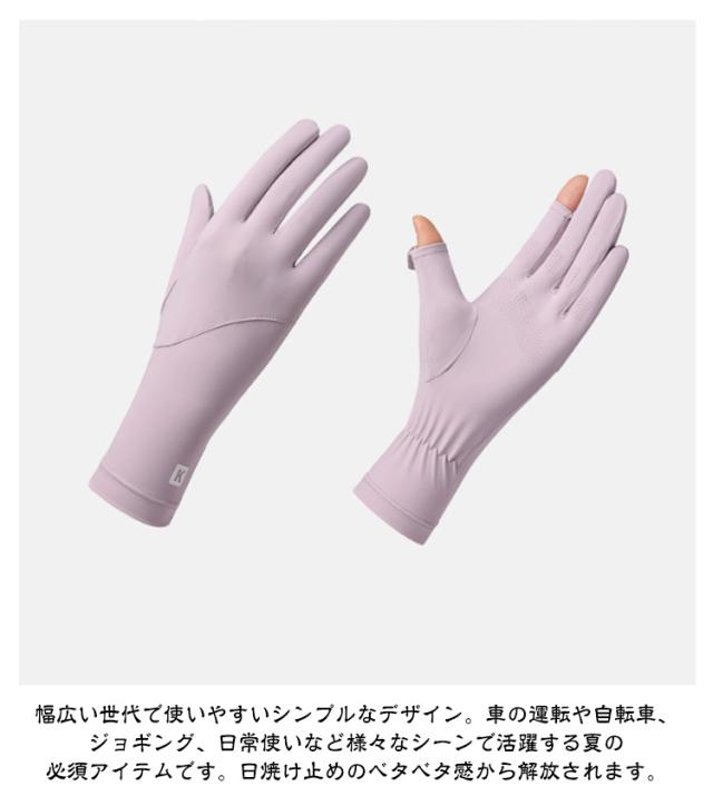 | 自転車や車の運転に便利!ひんやり涼しいUVカット手袋 2組セット 二本指出しタイプ 滑り止め メッシュ生地で通気性抜群! UVカット率98%以上、UPF50+。外出時さっと着用。日焼け止めクリームを塗る手間が省けます。 しっとりとした生地で肌に優しいです。通気性抜群の吸汗速乾生地。しっとりさらさらをキープします。 手のひら側もメッシュ(6026タイプ)で快適な通気性。さらに保湿性も抜群! 着けた瞬間、ひんやり〜「接触冷感」素材採用、蒸し暑さの不快感を軽減! 簡単にさっと親指と人差指が出せるデザイン。スマホ操作や細かい作業の時などわざわざカバーを外さなくていいんです。 ストレッチ素材。薄手なので圧迫感もなく素肌感覚の軽やかさ。シルエットも上品で綺麗です。 どのカラーでも紫外線カット率は98%以上で少し長めのデザインなので、手首部分までしっかりガードしますので日焼け対策にもおススメのアームカバーです。 幅広い世代で使いやすいシンプルなデザイン。車の運転や自転車、ジョギング、日常使いなど様々なシーンで活躍する夏の必須アイテムです。日焼け止めのベタベタ感から解放されます。 | |