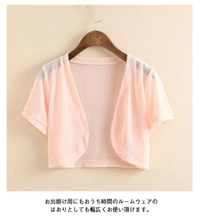 レディース ショート丈 ボレロ カーディガン サマーカーディガン サマーニット 薄手 カーディガン 半袖 ニットカーディガン UVカット 紫外線対策 冷房対策 日焼け防止 おしゃれ 無地 オフィス 夏物