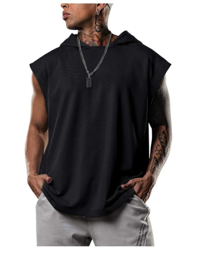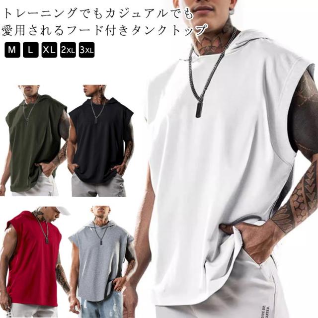タンクトップ フード付き プルオーバーパーカー 袖なし プルオーバーパーカー カジュアル ベスト ノースリーブ 無地 パーカー 夏 フレンチスリーブ ビッグシルエット トップス カットソー トレーニング 運動着 タンクトップ tシャツ スポーツウエア トップス メンズ