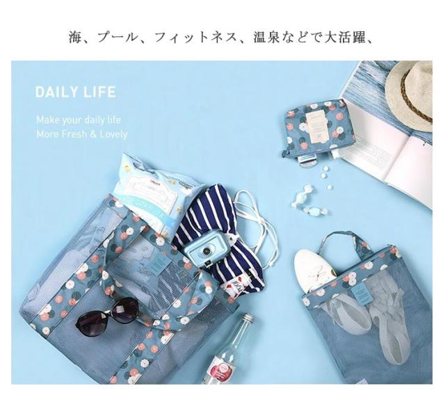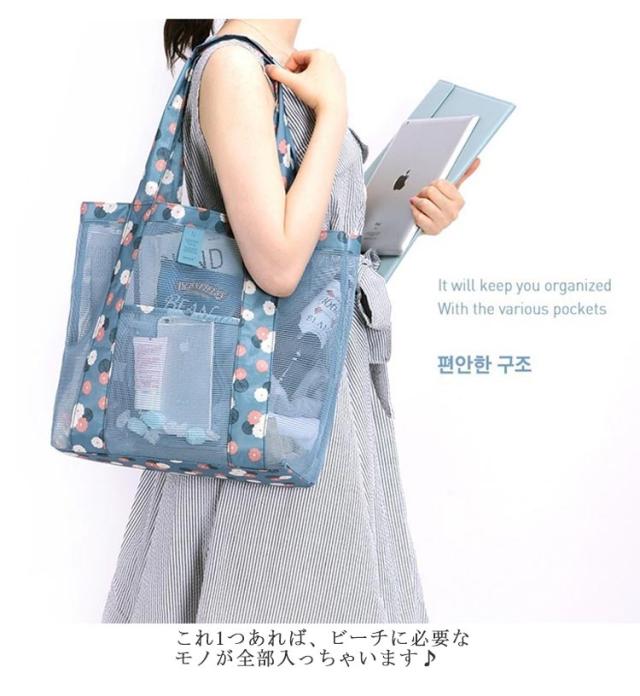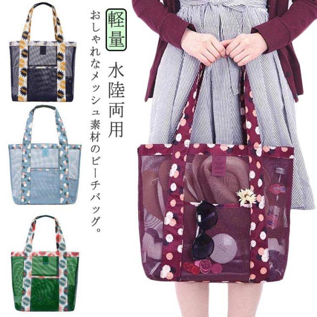 ビーチバッグ 水陸両用 大きサイズ プールバッグ 軽量 トラベルバッグ メッシュ トートバッグ ビニールバッグ 手提げ 肩掛け バッグ 女性用 ギフト アウトドア 夏 送料無料