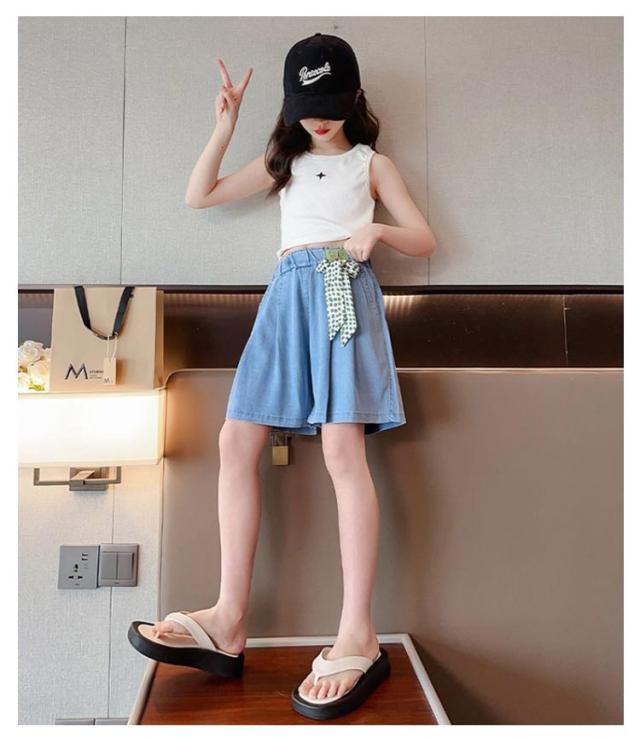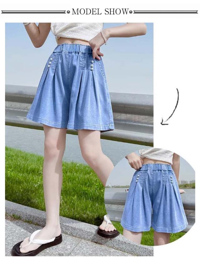 ワイドパンツ 女の子 スカーチョ キュロット ガウチョ ショートパンツ 接触冷感 ガウチョパンツ デニム 夏 薄手 涼しい ガールズ キッズ 五分丈 冷感 ひんやりスカンツ 涼しい ジュニア 女児 子供服 ボトムス 通園 通学 110 120 130 140 150 160 170 送料無料