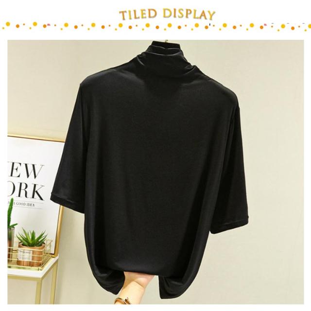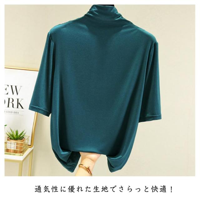 ハイネック 半袖 レディース トップス 5分袖 半袖 Tシャツ 春 夏 秋 ゴルフ インナー ハイネックtシャツ 日焼け対策 伸縮性 五分袖 無地 カットソー タートルネック 薄手 シンプル カジュアル 大きいサイズ ボトルネック 全12色 送料無料