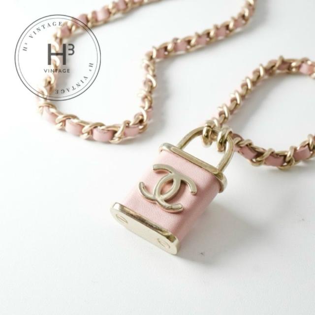 シャネル CHANEL ネックレス ペンダント チョーカー ピンク ゴールド ココマーク パドロック 2連 チェーン 送料無料