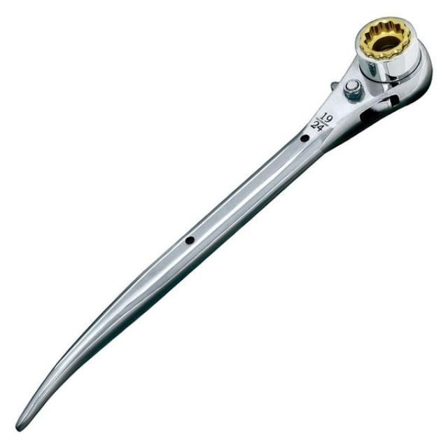 イチネン マストツール ラチェットレンチ 19/24×17 曲がり 1丁 八角グリップ ダブルソケット