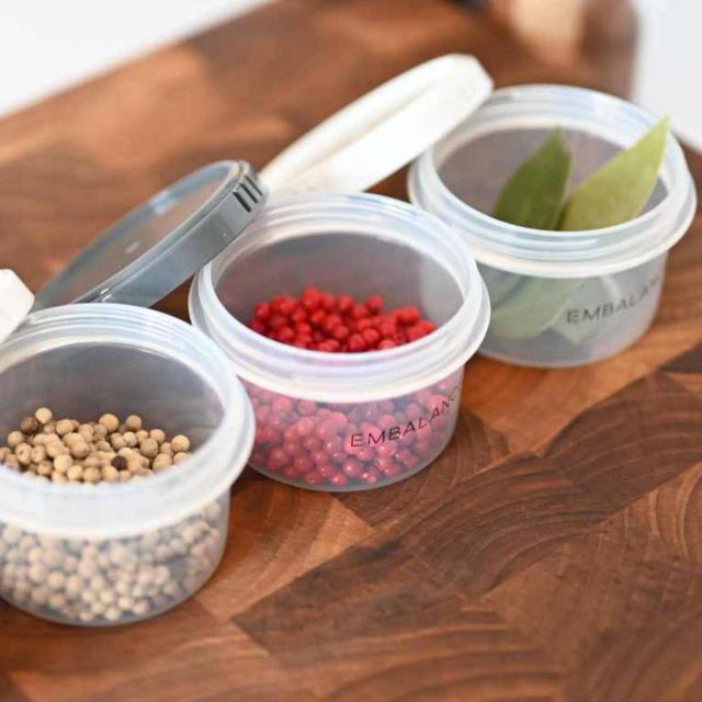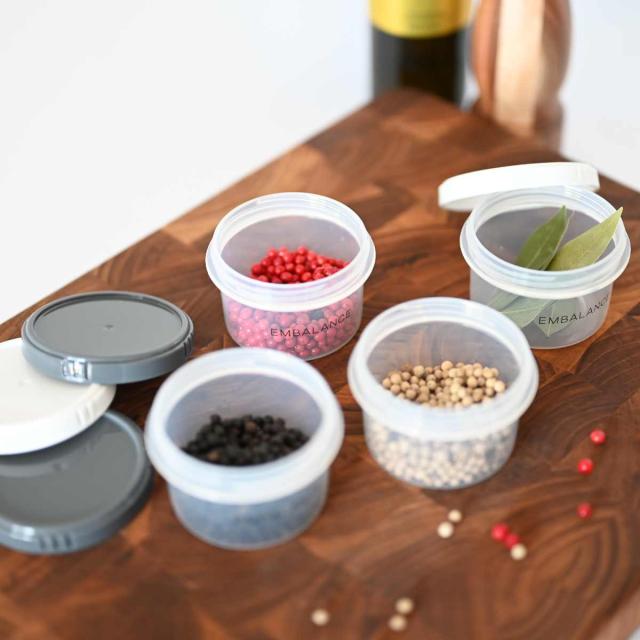 丸型の保存容器、130ml同色2個セットです。薬味・サプリメント・薬などの小さな物を入れられます。食材の鮮度を保持するエンバランス加工が施されており、食材を美味しいうちに使い切れて、食品ロスを減らすことができます。冷凍・フタをずらして電子レンジも使用可能で保存から調理に使えます。食洗機も使用可能でお手入れが簡単なのも嬉しいポイントです。