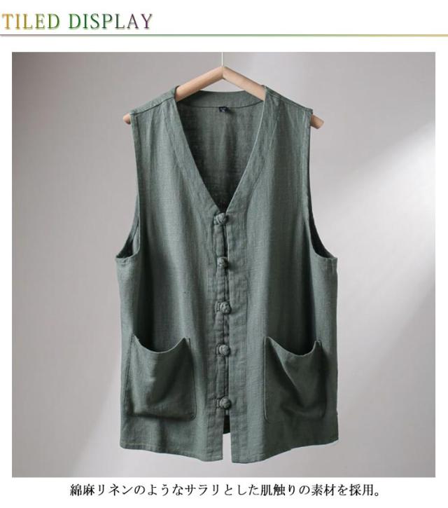 前開き メンズ カジュアル トップス 夏ベスト サマーベスト ジレ ベスト 涼しい 薄手 ジレ 中華風 チャイナ服 チャイナベスト チャイナボタン リネンtシャツ ビジネス 快適 通気性 吸汗速乾 無地 涼しい 軽量 通勤
