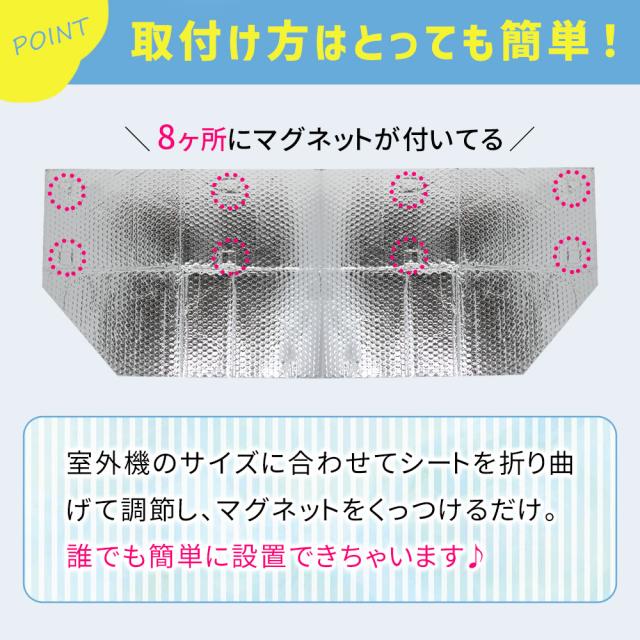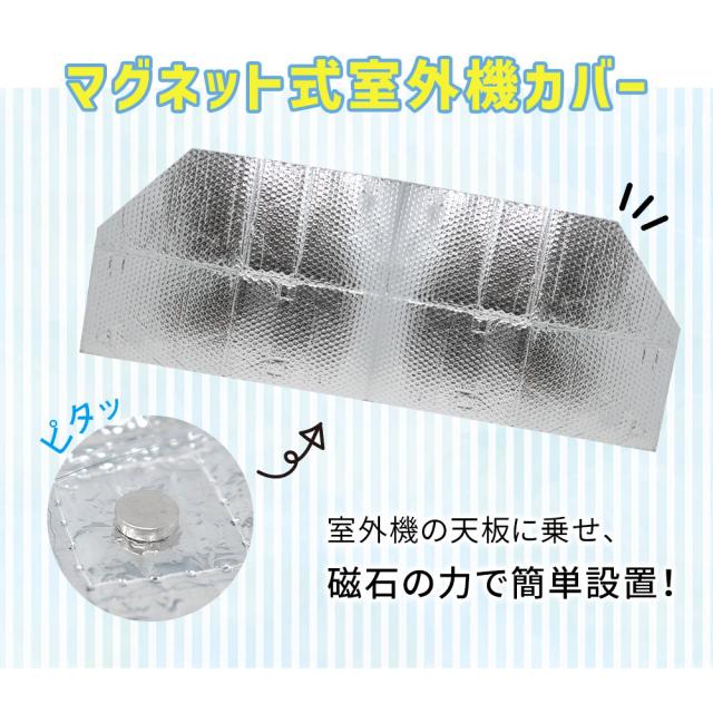 室外機/カバー/遮光/反射/エアコン/エアコン室外機/遮熱/冷房/効率/空調/冷暖房/アルミ/負担/軽減/太陽光/太陽光遮断/電気料金/節電/冷却/直射日光/直射日光遮断/マグネット式/かぶせるだけ/簡単取付/簡単設置/磁石/クーラー室外機カバー/クーラーの室外機カバー/エアコンの室外機カバー/夏/日よけ/日除け/室外機カバーアルミ製/室外機カバーアルミ/マグネット/必要か/diy/ほこり/保護カバー/節電対策/節電グッズ/ひさし/簡単/シルバー/暑さ対策/断熱/電気代/電気代節約/反射板/クーラー/汚れ防止/新生活/おしゃれ/折りたたみ/軽い/空調効率/eco/工事なし/保護フード/ガード/便利グッズ/