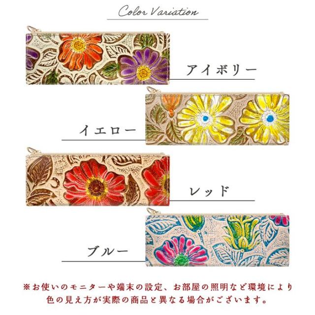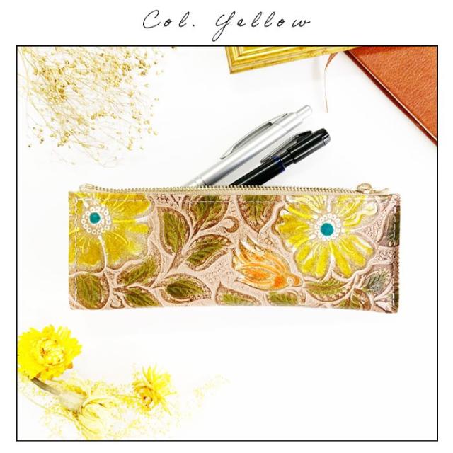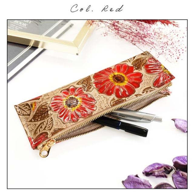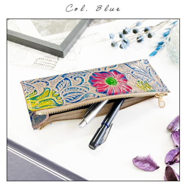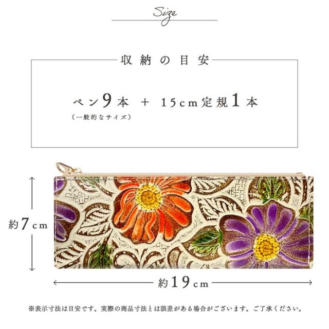 ペンケース ペン入れ 筆箱 レザー コンパクト 本革 レトロな 花 型押し おしゃれ フラワー ペン ケース スリム 文具 筆記用具 ふで箱 収納 革 上品