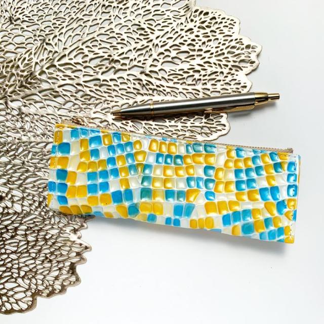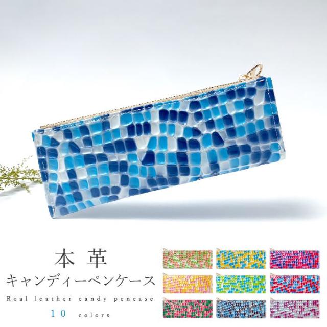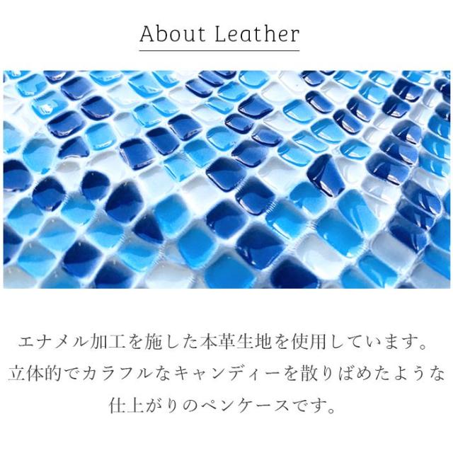 ペンケース 筆箱 レザー ペン入れ コンパクト スリム 文具 筆記用具 ふで箱 収納 革 牛革 高級 ペン ケース 華やか お洒落 本革 キャンディ アート