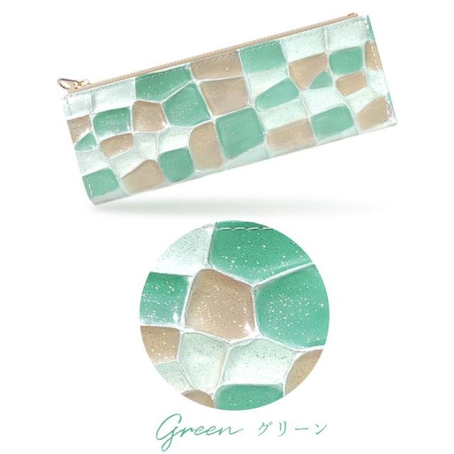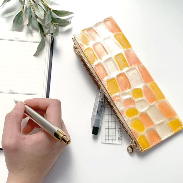 ペンケース かわいい おしゃれ 韓国 おしゃれ 筆箱 レザー ペン入れ コンパクト スリム 文具 筆記用具 ふで箱 収納 革 上品 高級 本革 ステンドグラス