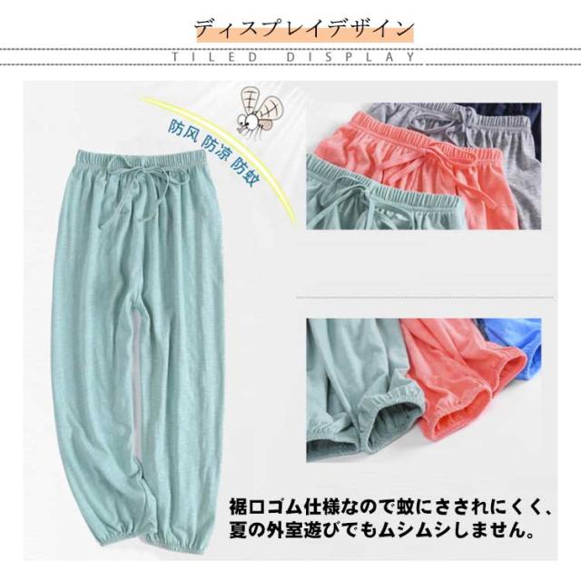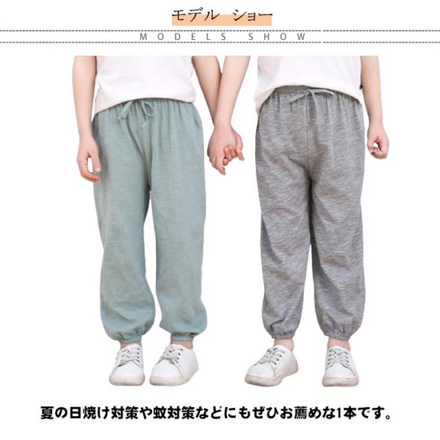 | 【虫刺され対策】【軽量 薄手】【100-150cm】 夏の日焼け対策や蚊対策などにもぜひお薦めな1本です。 裾口ゴム仕様なので蚊にさされにくく、夏の外室遊びでもムシムシしません。 ウエストはゴムで伸縮性があり、着やすさ抜群です。 夏のお出かけや通園、通学、ルームウェアにぴったり! 薄手のタイプで、通気性のある速乾生地は肌に優しい、真夏でも快適に着こなせる | |