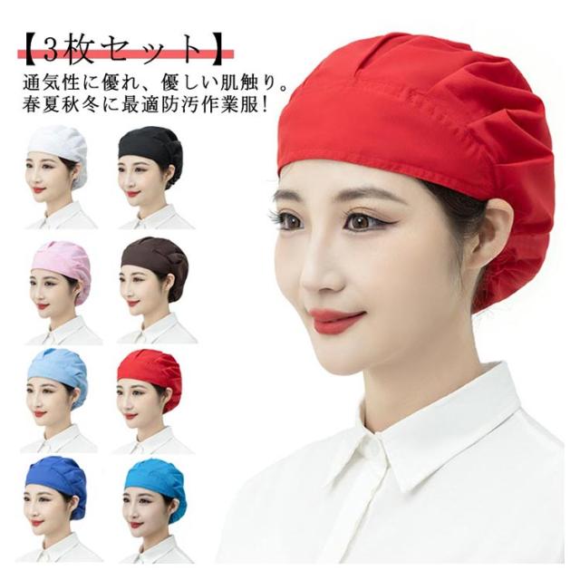 衛生キャップ 3枚セット キッチン 衛生帽子 衛生帽 給食帽 通気性 工場 業務用 調理帽子 制服 ユニフォーム 帽子 調理キャップ 飲食店 作業用 清潔 料理 食品工場 食品加工 家庭 飲食 髪 無地 男女兼用