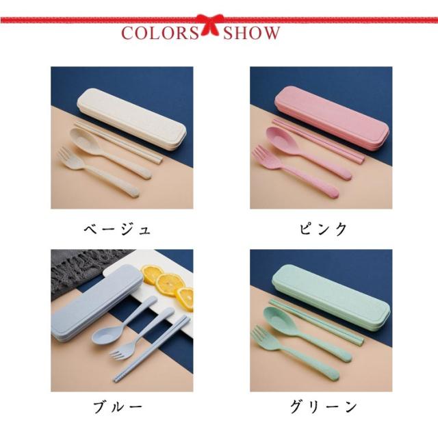 | 麦わら素材を使用したカトラリーセットです。 小麦の収穫後の本来燃やして破棄してしまう麦わらを有効活用し、商品を作る際のプラスチック削減をすることでとてもエコな製品となっています。 フォーク、スプーン、箸を気軽に持ち運べるケース入りのカトラリーセット。 キャンプやお弁当だけでなく、ちょっとしたピクニックや運動会にも。 | |