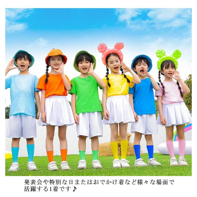 | 「子どもダンス衣装 3点セット」 女の子:tシャツ・スカート・ソックスの3点セット 男の子:tシャツ・ハーフパンツ・ソックスの3点セット 綿生地なので柔らかくて低刺激、とってもお肌にやさしいです。 ダンスのお衣装にはもちろん、普段のお出かけ着としてお使い頂けますよ♪ 発表会や特別な日またはおでかけ着など様々な場面で活躍する1着です♪ | |