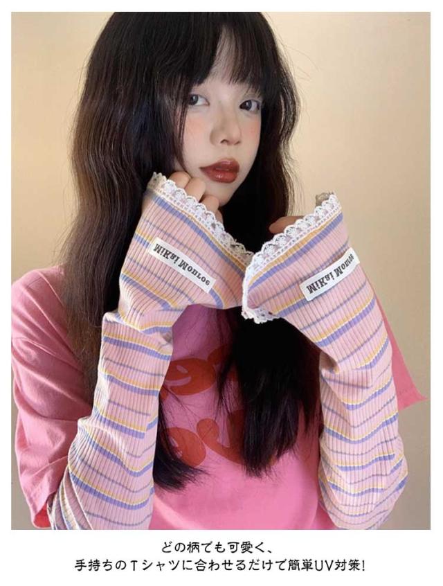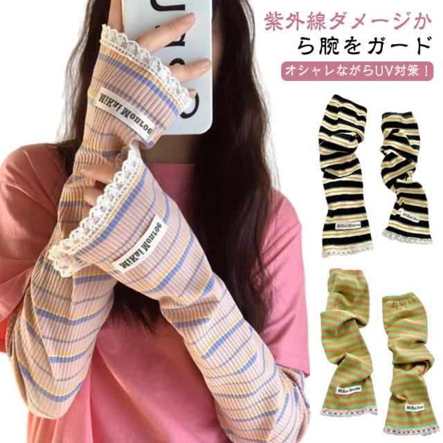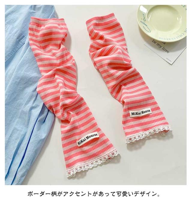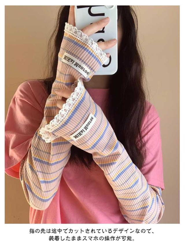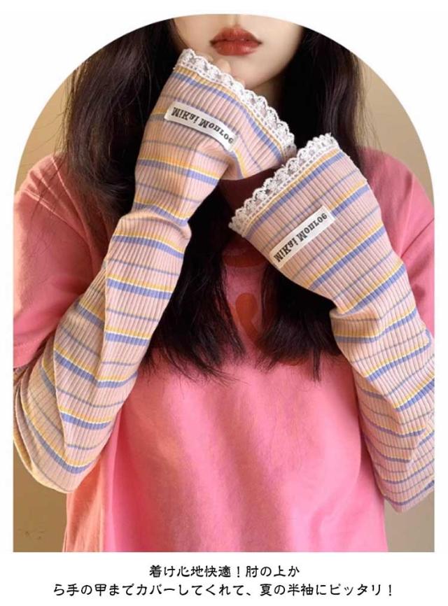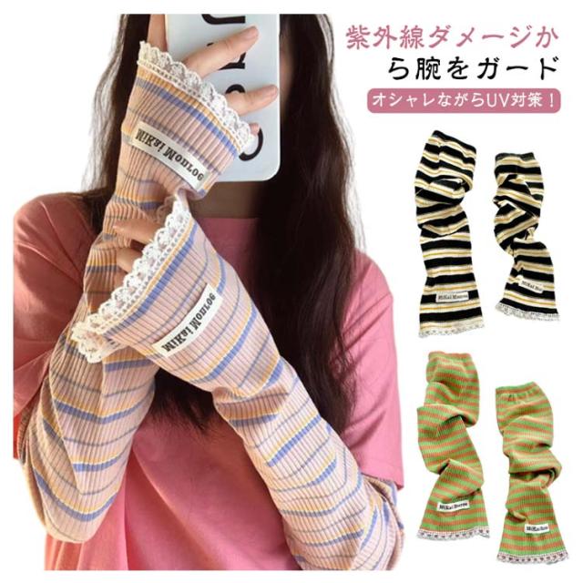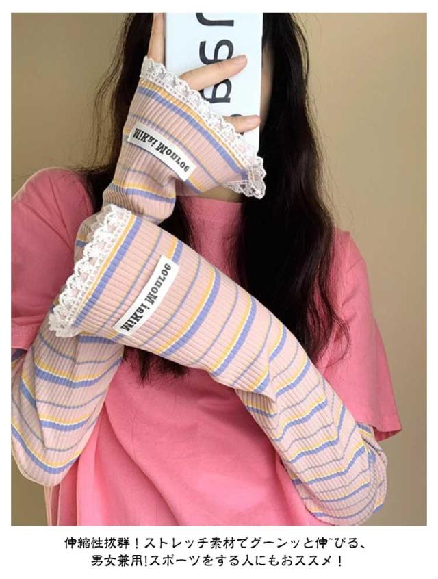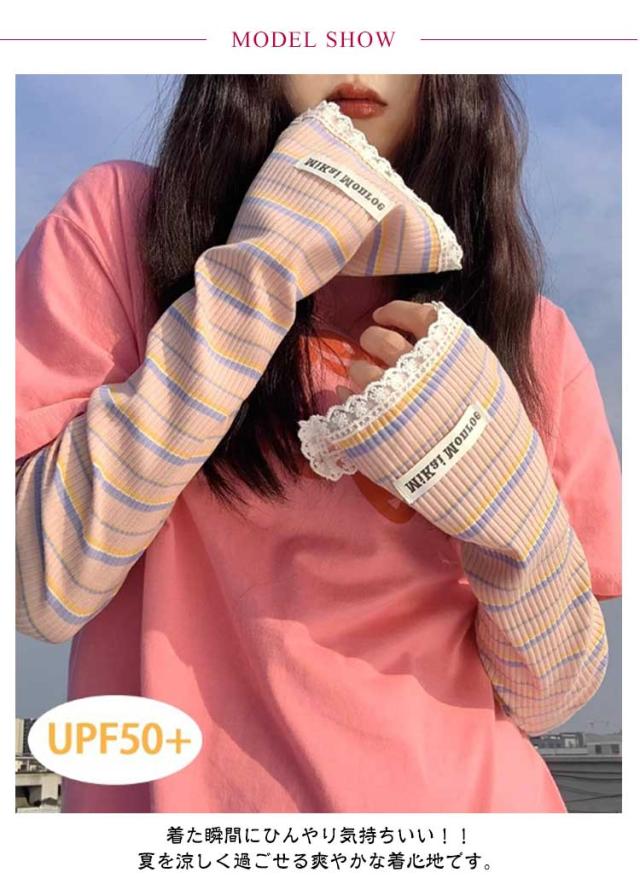 2ペア アームカバー 冷感 UPF50+ 指穴付き ロング レディース メンズ ずれない ひんやり 幅広 可愛い ボーダー レース 通気性 涼しい 紫外線対策 UVカット スマホ 指なし 指出し ゆったり スポーツ 自転車 アウトドア 通勤