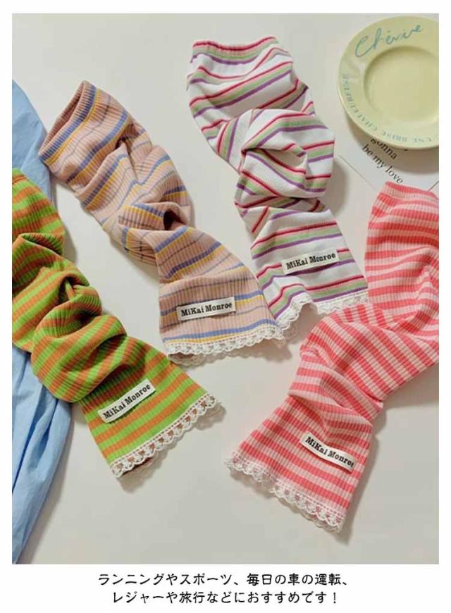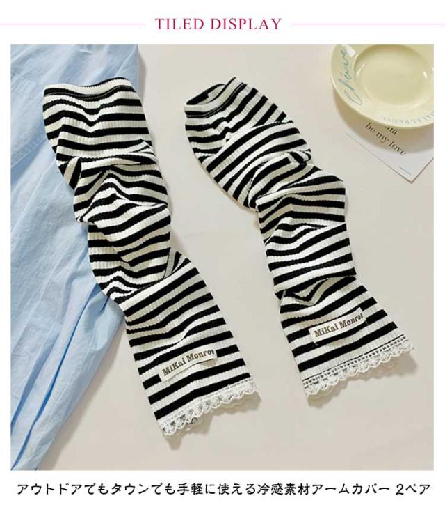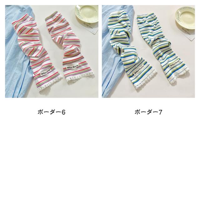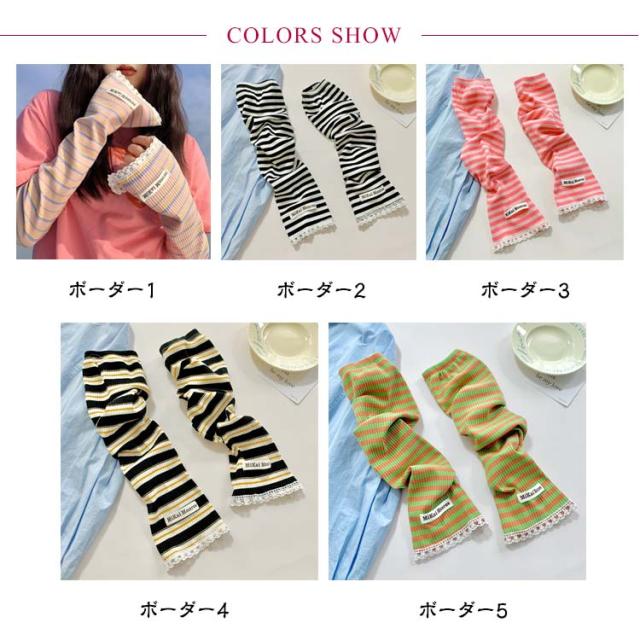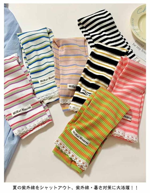 | 紫外線ダメージから腕をガード オシャレながらUV対策! アウトドアでもタウンでも手軽に使える冷感素材アームカバー 2ペア 着た瞬間にひんやり気持ちいい!!夏を涼しく過ごせる爽やかな着心地です。 ボーダー柄がアクセントがあって可愛いデザイン。 ゆったりタイプで長時間着用しても快適です。 体型を拾わずきれいに着られる程よい厚みが特徴。 ちょうど良いしっかり素材がロングシーズンお役立ち! 伸縮性拔群!ストレッチ素材でグーンッと伸~びる、男女兼用!スポーツをする人にもおススメ! 指の先は途中でカットされているデザインなので、装着したままスマホの操作が可能。 着け心地快適!肘の上から手の甲までカバーしてくれて、夏の半袖にピッタリ! どの柄でも可愛く、手持ちのTシャツに合わせるだけで簡単UV対策! 夏の紫外線をシャットアウト、紫外線・暑さ対策に大活躍!!ランニングやスポーツ、毎日の車の運転、レジャーや旅行などにおすすめです! | |
