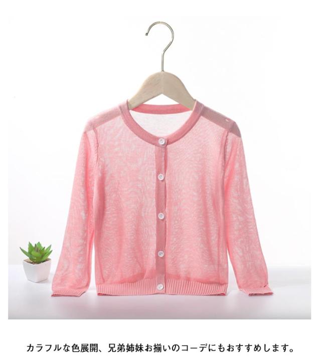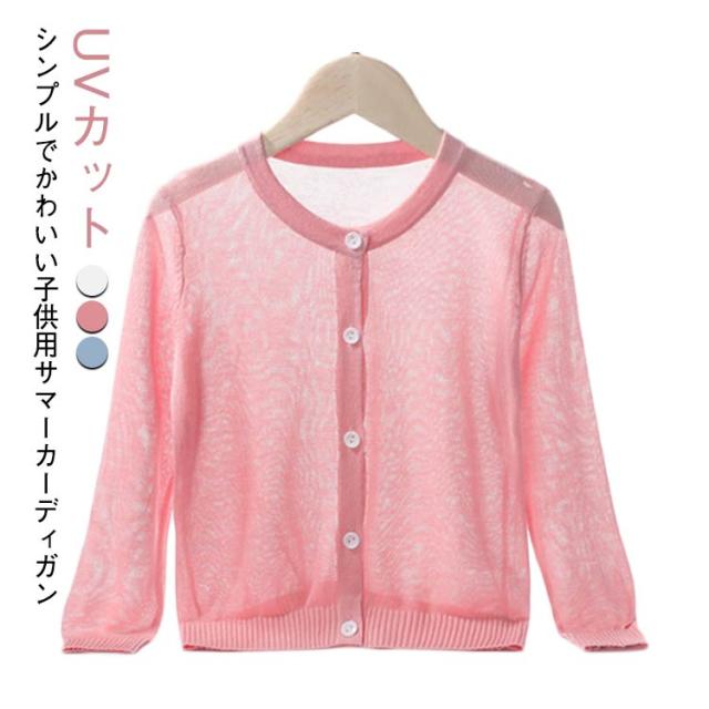 キッズ カーディガン 薄手 子供 サマーカーディガン 女の子 男の子 透け感 長袖 uvカット 紫外線対策 子供服 春 サマーラウンドネック UV ボレロ 女子 シンプル スクール カジュアル フォーマル 夏 冷房 無地 入園式 大きいサイズ 送料無料