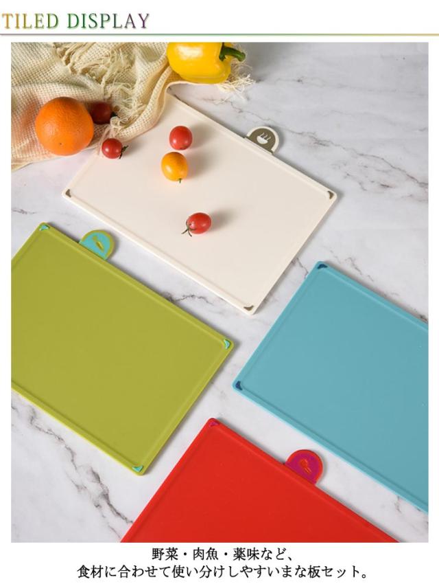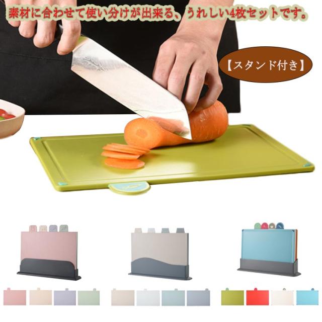 まな板 4枚セット スタンド付き インデックスまな板 肉用 野菜用 魚用 使い分け まな板 カラフル 抗菌 食洗機対応 スタンド付き カッティングボード インデックス付まな板 まな板スタンド 滑り止め キッチン 清潔