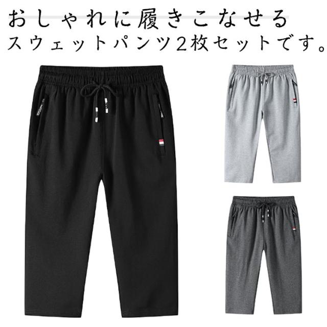 2枚セット!スウェットパンツ メンズ ジャージ 下 7分丈 パンツ 膝下丈 クロップドパンツ スポーツ ハーフパンツ 接触冷感 ひんやり 涼しい ダンス ゴルフウェア ストレッチ ジャージパンツ 半ズボン ショートパンツ カジュアル 大きいサイズ 夏 無地 送料無料