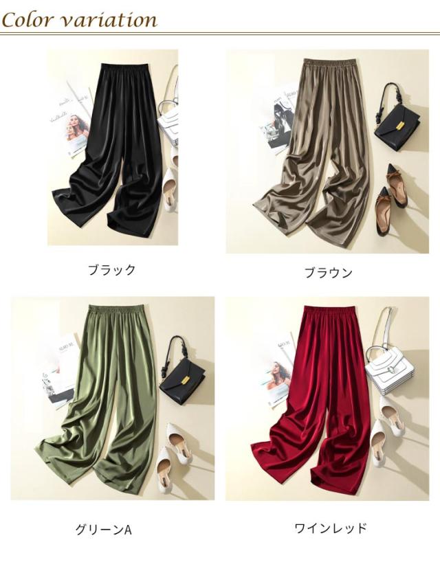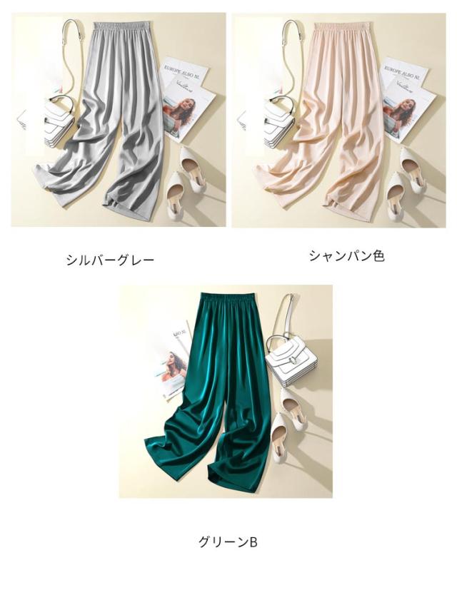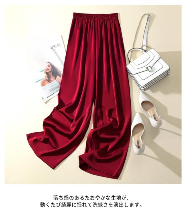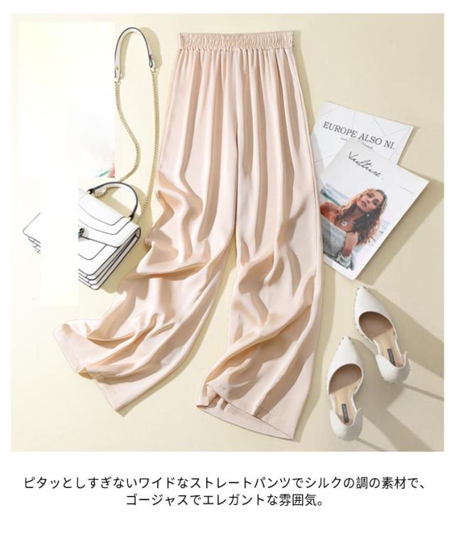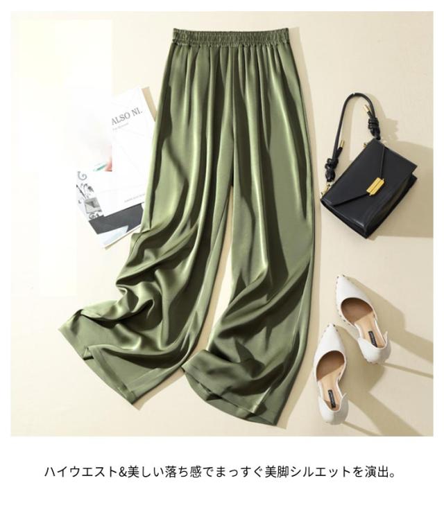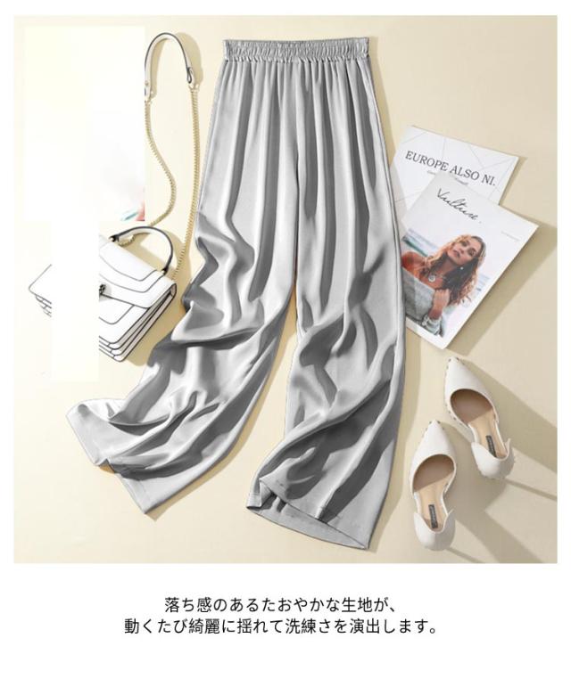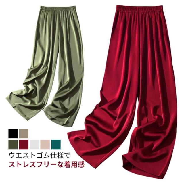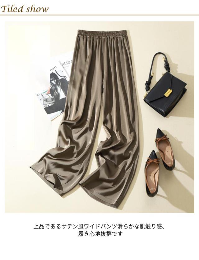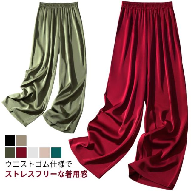 サテンパンツ レディース ワイドパンツ サマー シルクリアル ボトムズ ウエストゴム サテンパンツ 薄手 ロングパンツ 無地 シンプル 春 夏 着やせ 光沢感 ハイウエスト 着痩せ 美脚 通勤 無地 韓国ファッション