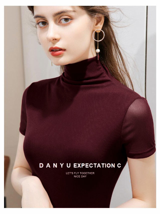| ハイネック半袖カットソー。 縫い目がない。首に切り替えしの縫い目がないためゴワつかず、下がりにくいストレスフリーなネックです。 透け袖。袖はメッシュ素材で程よく透け感があります。 程よく伸縮性のある素材なので動きやすく、 着心地が良いです。また、さらっとして柔らかいメッシュ生地が魅力です。 普段使いからダンス練習着衣装に! | |