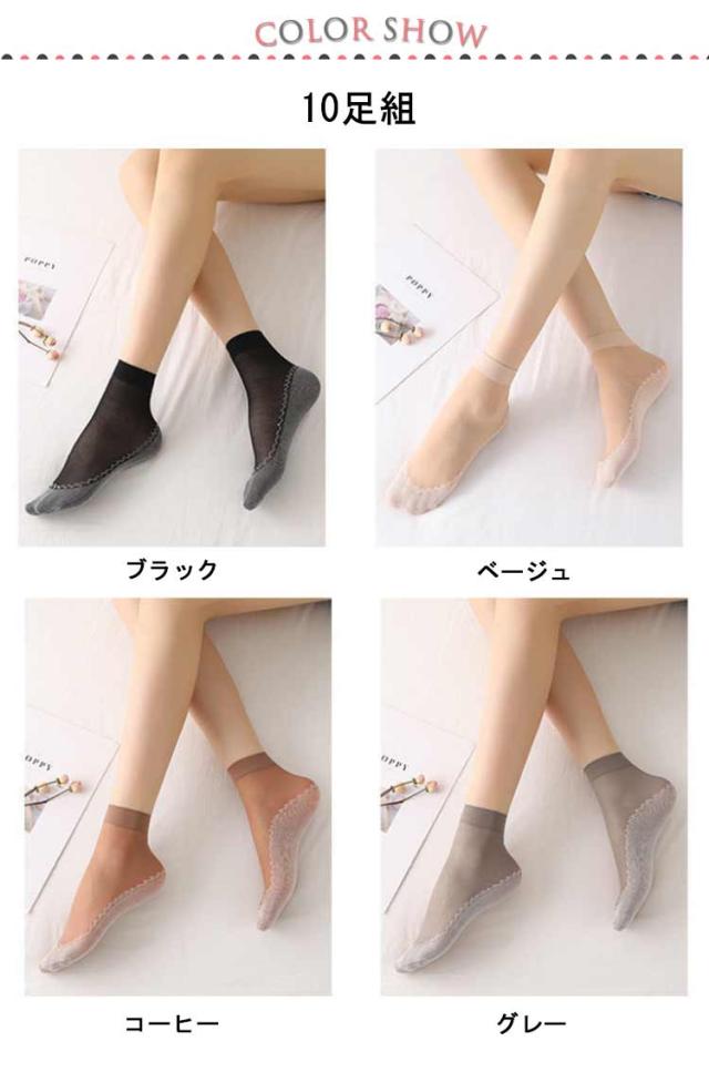 シースルーソックス 靴下 10足組 ソックス 夏用 女性 婦人 透け感 レディース お洒落 女子力 素足感覚 薄手 シースルー 脱げない ストッキング 滑り止め 伸縮性 吸汗速乾 通勤 オフィス 通気性 送料無料