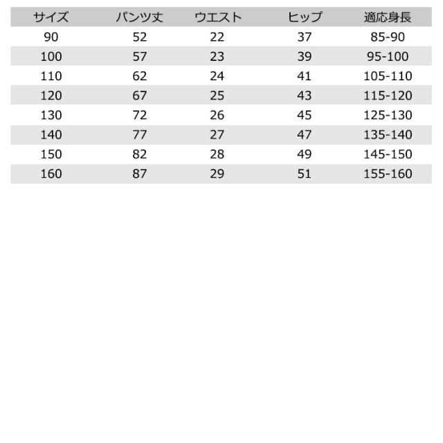 | サイズ | 100cm 110cm 120cm 130cm 140cm 150cm 160cm |
