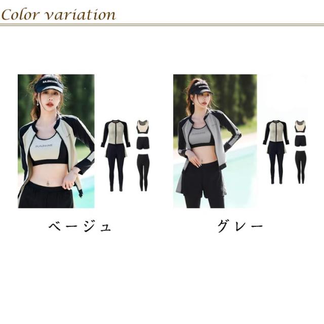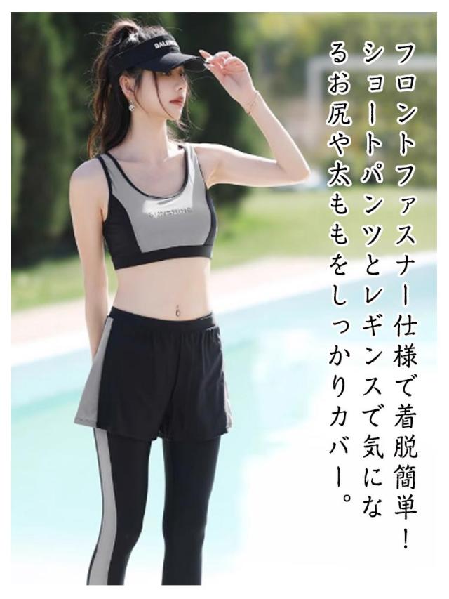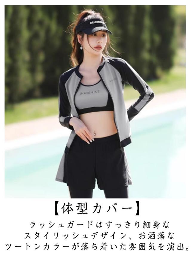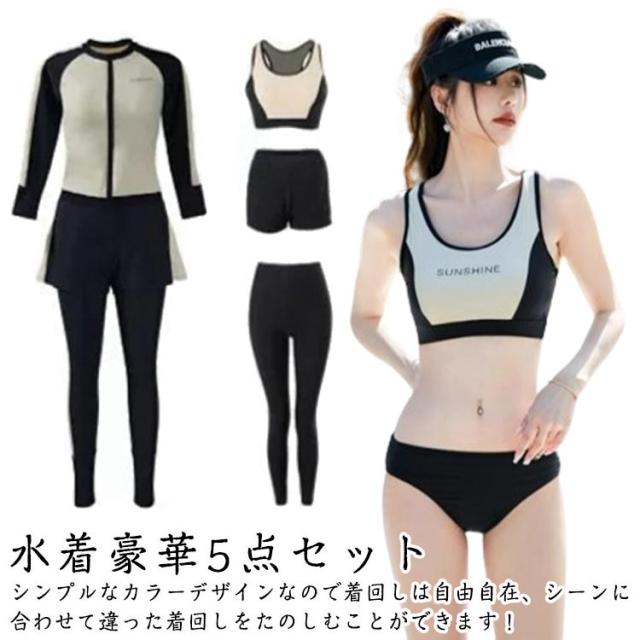 | 【水着豪華5点セット】ラッシュガード+ショートパンツ+レギンス+ブラ+ショーツ、使いやすく着回しがしやすい女性用水着5セットで、届いたらすぐに使えます。シンプルなカラーデザインなので着回しは自由自在、シーンに合わせて違った着回しをたのしむことができます! 【体型カバー】ラッシュガードはすっきり細身なスタイリッシュデザイン、お洒落なツートンカラーが落ち着いた雰囲気を演出。フロントファスナー仕様で着脱簡単!ショートパンツとレギンスで気になるお尻や太ももをしっかりカバー。レギンスにこだわりにこだわった無地と柄の切替ラインで、着た瞬間魔法のように細く見えちゃう! 【UV対策】UVカット生地を使用しているので、着るだけで首元から足首までしっかり日差しからガード。日焼け対策のほか、虫刺され、クラゲ対策、擦り傷などの外傷対策にもオッケー。岩場等でのケガから身を守る為にも着いているだけで安心感UP! 【水陸両用フィットネスウェア】軽量なのに伸縮性抜群の生地でとても動きやすいです。速乾性に優れた水着素材なので、激しい運動の後もさらっとした着心地、運動に最適です!ジスポーツやフィットネスに、スイミング、サーフィン、ジム、サイクリング、ダイビングと幅広いジャンルで使える便利なスポーツアイテムです。 | |