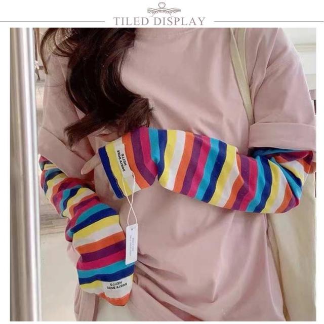 | 【ボーダー柄アームカバー 】【2枚セット】【紫外線対策/冷房対策】 【接触冷感】 接触冷感の素材が触れたときにひんやりと気持ちいい。 二の腕までしっかりと包み込んでくれる長めの丈感で日焼け対策にも室内の冷房対策にもおすすめのアイテムになっております。 親指用のホールがあり、手の甲はカバーしながら指先は出るので、自転車や車の運転も安心。 | |