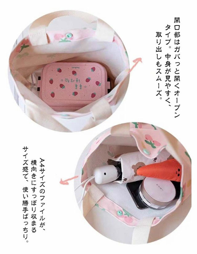 | 学校や幼稚園・塾に持っていく レッスン・バッグとして、また、ちょっとしたお出かけ用など多目的に使用できます 開口部はガバっと開くオープンタイプ。中身が見やすく、取り出しもスムーズ。 A4サイズのファイルが、横向きにすっぽり収まるサイズ感で、使い勝手ばっちり。 | |