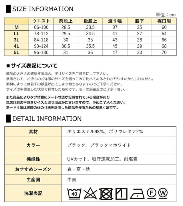 5L:ウエスト96-130 前股上31 後股上36.5 渡り幅47 股下30 裾口周70