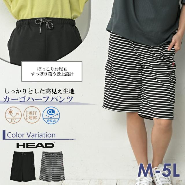 大きいサイズ レディース カーゴハーフパンツ ミドル丈 メール便対応 ウエストゴム UVカット 速乾 耐塩素 ボトムス HEAD M/LL/3L/4L/5L ゆったりサイズ ぽっちゃり女子 プラスサイズ
