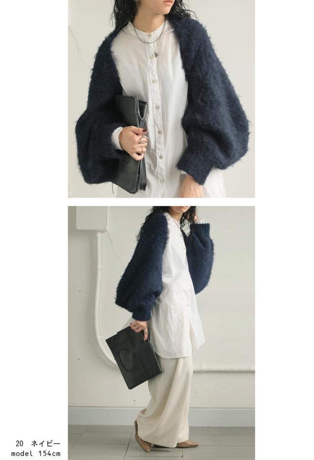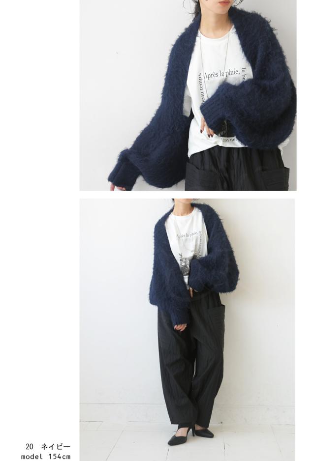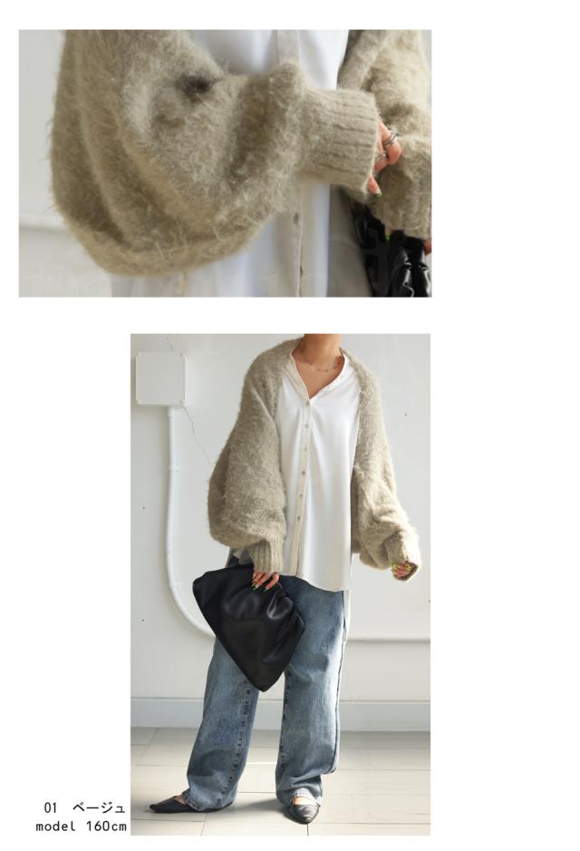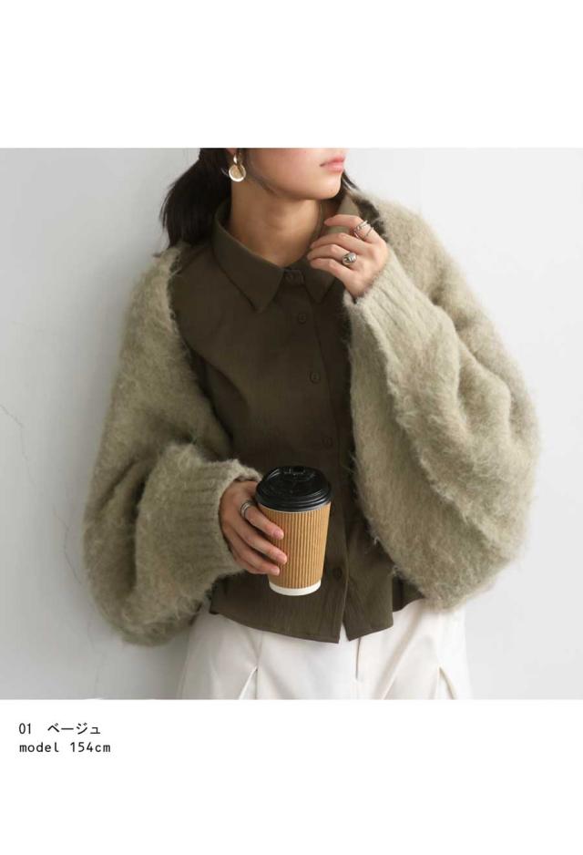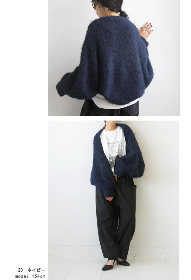 pk-01151 カーディガン シャギーニット シャギー 無地 ショート丈 シュラグ リブ ウール混 ゆったり シンプル きれいめ ぽわん ふわふわ ふんわり 柔らか 暖かい 体型カバー 大きめ
