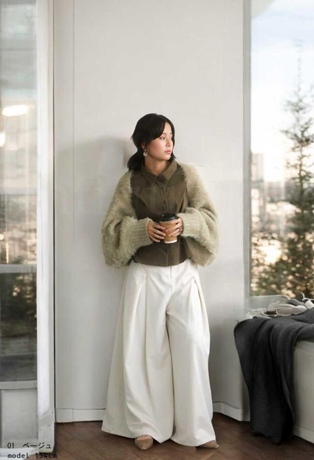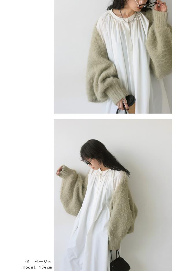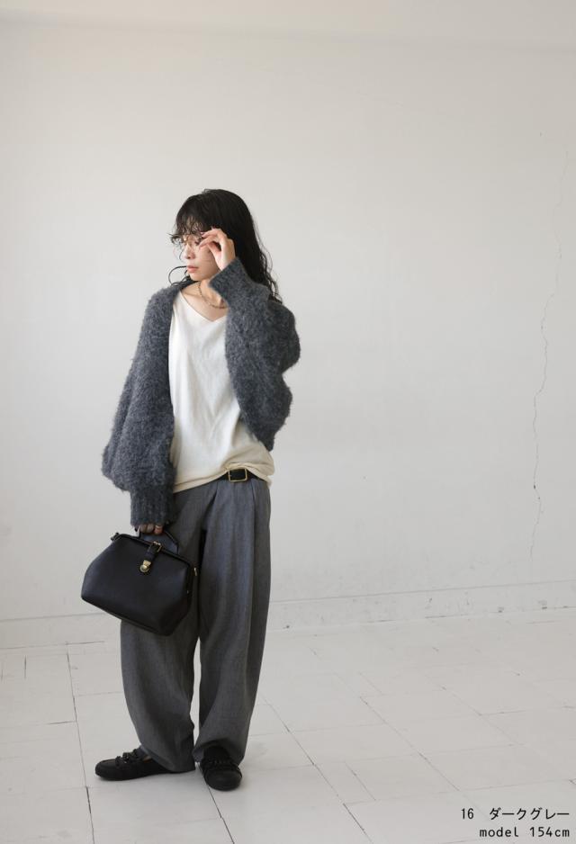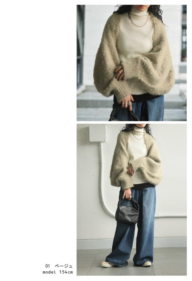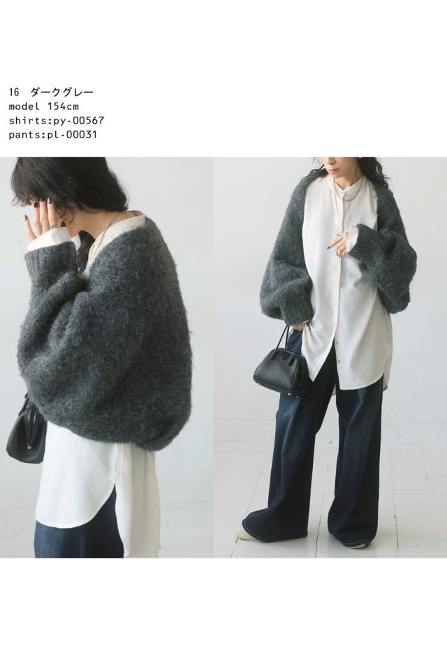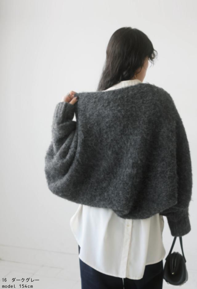 pk-01151 カーディガン シャギーニット シャギー 無地 ショート丈 シュラグ リブ ウール混 ゆったり シンプル きれいめ ぽわん ふわふわ ふんわり 柔らか 暖かい 体型カバー 大きめ