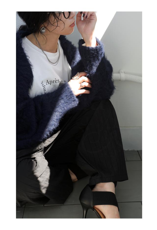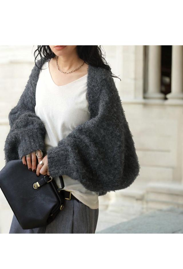ニュアンス感を演出する、温かみのあるシャギーニットボレロ。