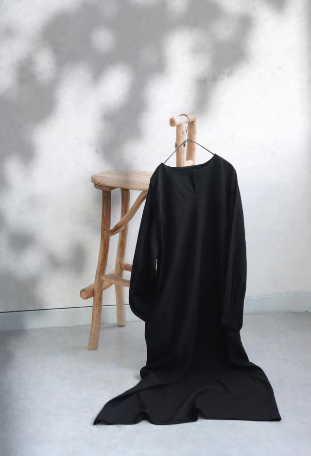 シンプルながらもシルエットに拘ったブラックワンピース。
