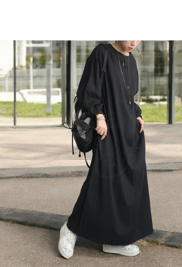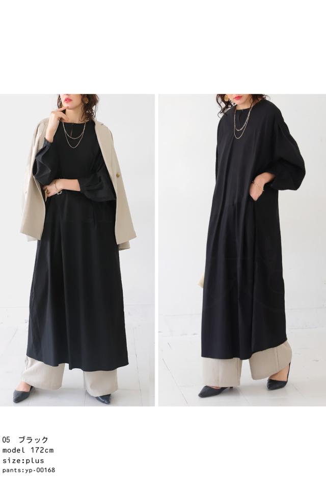 pk-01173 ロング 無地 ロングワンピース ロングワンピ 長袖 Aライン 涙開き 羽織り ゆったり シンプル 上品 きれいめ 高級感 ダーツ シンプル ナチュラル 体型カバー 細見え